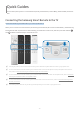 Quick Guides You can learn quickly how to run and use the frequently used functions, such as Bixby, Ambient Mode, and Smart Hub. Connecting the Samsung Smart Remote to the TV Connect the Samsung Smart Remote to your TV to operate the TV. When you turn on the TV for the first time, the Samsung Smart Remote pairs to the TV automatically.