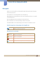 Trước khi sử dụng sản phẩm Thận trọng Không rút dây nguồn khi sản phẩm đang được sử dụng. Sản phẩm có thể bị hỏng do sốc điện. Không sử dụng dây nguồn cho sản phẩm không phải sản phẩm được ủy quyền do Samsung cung cấp. ! Có thể xảy ra điện giật hoặc hỏa hoạn. Đảm bảo ổ cắm điện sẽ được sử dụng để cắm dây nguồn không bị cản trở. Nếu xảy ra bất kỳ sự cố nào trong sản phẩm, hãy rút cáp nguồn để ngắt hoàn toàn nguồn điện vào sản phẩm.