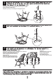 1 Take the allen wrench, and turn the bolts until the legs are secure. DO NOT TIGHTEN COMPLETELY. Stop when you feel you are adding force to tighten the bolt. 2 3 Stand chair up on an even surface and check that it is balanced. If there is a slight wobble, apply downward pressure in the corner where a leg is uneven. Keeping pressure in that corner, tighten all bolts. If balanced, apply downward pressure evenly in the center and tighten all bolt. Do not over-tighten beyond hole depth.