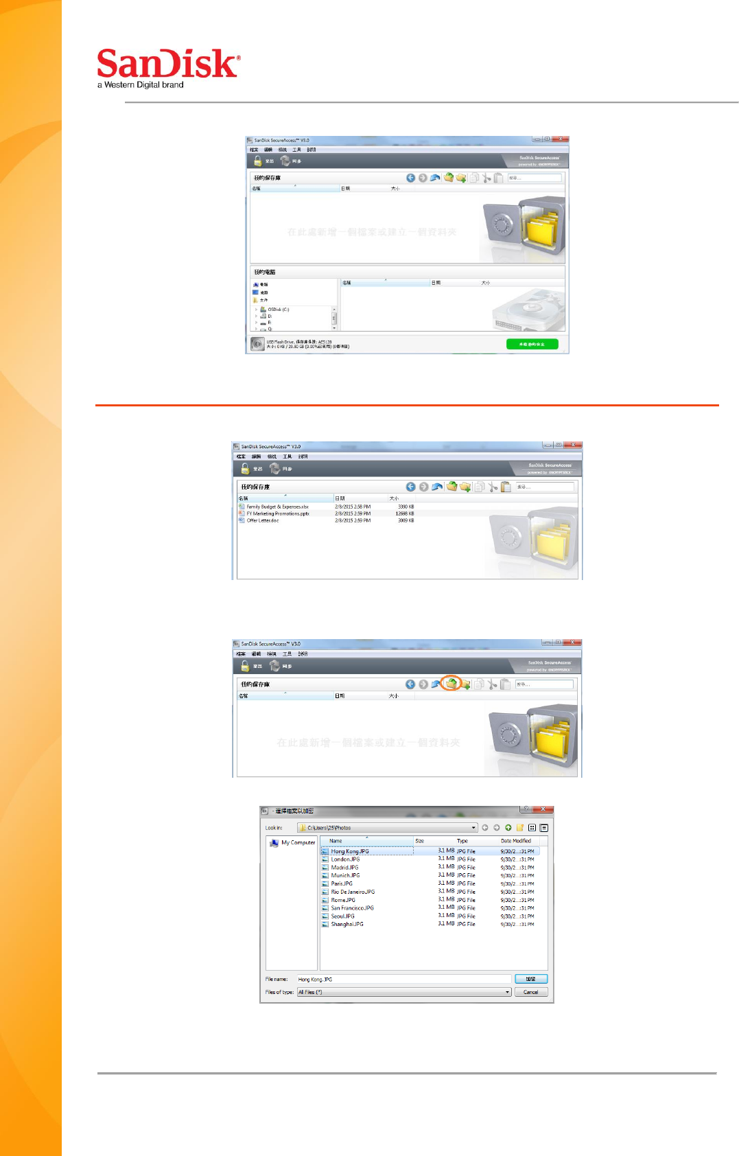 按一下保存庫介面右上角的綠色符號,並選擇您要加入的檔案進行手動加入檔案(圖