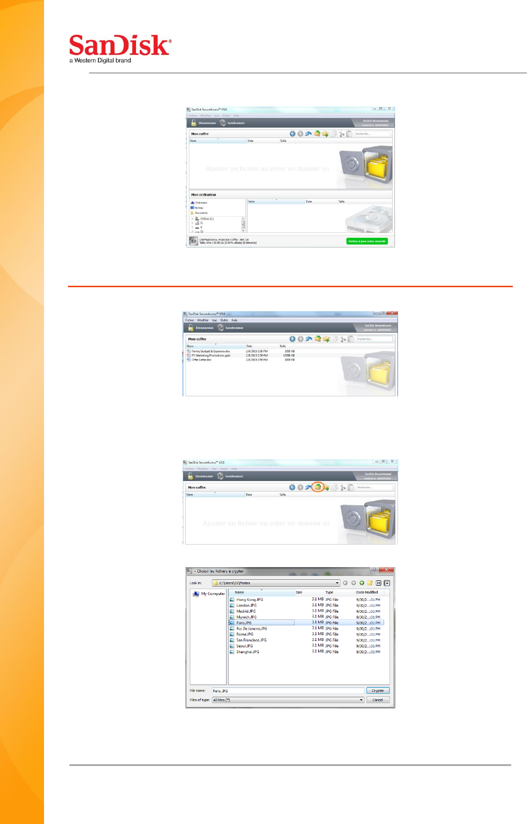 Ajout de fichiers ou de dossier dans le coffre-fort privé