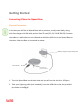 Getting Started Connecting iPhone to iXpand Base Physical Connection In the box you will find an iXpand Base with a premium, sturdy metal body, along with fast charger with 6ft cable and an Ultra SD card (32, 64, 128 & 256 GB). Connect the cable to a wall outlet on one side and to the Micro USB slot in the iXpand Base on the other. Now the Base is connected to power. 15Watt (3 Amp) fast charger with 6ft cable Micro USB slot SD Card Slot (Card provided with Device) 1.