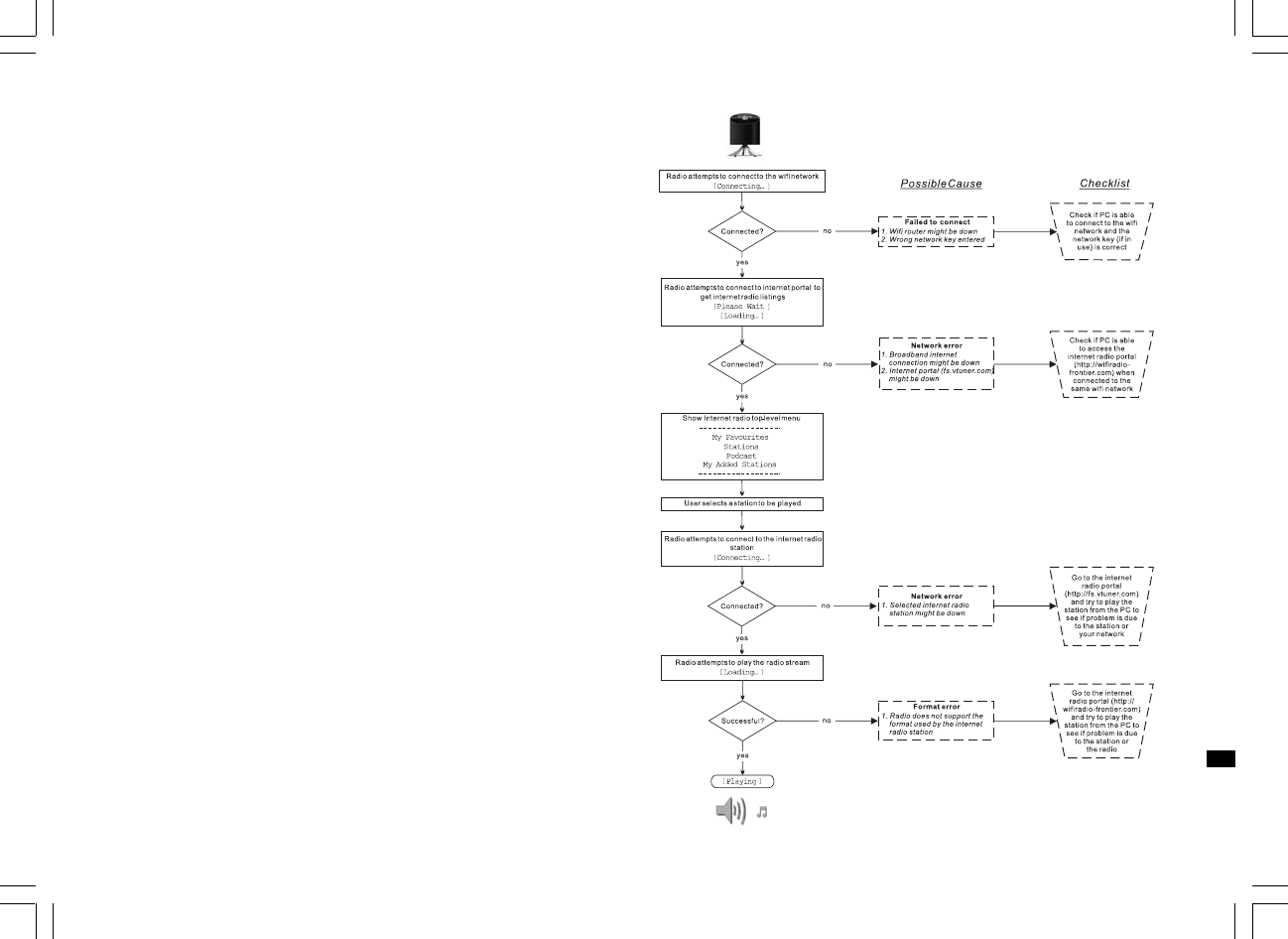 Troubleshooting – connecting to an internet station