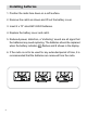 Installing batteries 1. Position the radio face down on a soft surface. 2. Remove the catch as shown and lift out the battery cover. 3. Insert 2 x “D“ size/UM-1/LR20 batteries. 4. Replace the battery cover and catch. 5. Reduced power, distortion, a “stuttering“ sound are all signs that the batteries may need replacing. The batteries should be replaced when the battery indicator flashes and E shows in the display. 6.