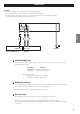Connections CAUTION: < Switch off the power to all equipment before making connections. < Read the instructions of each component you intend to use with this unit. < Be sure to insert each plug securely. To prevent hum and noise, avoid bundling the signal interconnection cables together with the AC power cord. B A ENGLISH C R L DIGITAL OUT CD Player, MD Deck, etc. R L REC PLAY AC Outlet Amplifier A ANALOG IN/OUT jacks Analog 2-channel audio signal is input or output from these jacks.