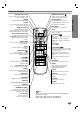 Display Window The DVD deck is selected. A disc is in the DVD deck. (Lights when a disc is in the DVD deck and Flashes when no disc.) Indicates repeat mode. DVD to VCR copy is in progress. DVD+VCR is in timer recording or a timer recording is programmed.(VCR part only) A cassette is in the VCR deck. The VCR deck is selected. DVD COPY VCR REC PM TV DVD+VCR functions are available and channels are selected at TV. Indicates PM time. (AM is not displayed.) DVD+VCR is Recording.