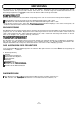MÖGLICHE LÖSUNG PROBLEM Bild ist seitenverkehrt Die Funktion BILDUMKEHRUNG O/U oder BILDUMKEHRUNG R/L ist nicht angepaßt (Siehe Abschnitt “SONSTIGE FUNKTION” auf Seite 44 und 45). Einige Displays sind auf dem Bild nicht sichtbar Die Funktion DISPLAY ist nicht aktiviert (Siehe Abschnitt “SONSTIGE FUNKTION” auf Seite 44 und 45). Kein Ton l l l l Die Stecker der Audio-Kabel sind nicht korrekt angeschlossen. Die Audioquelle ist nicht definiert. Drücken Sie die VOLUME-Taste (+).
