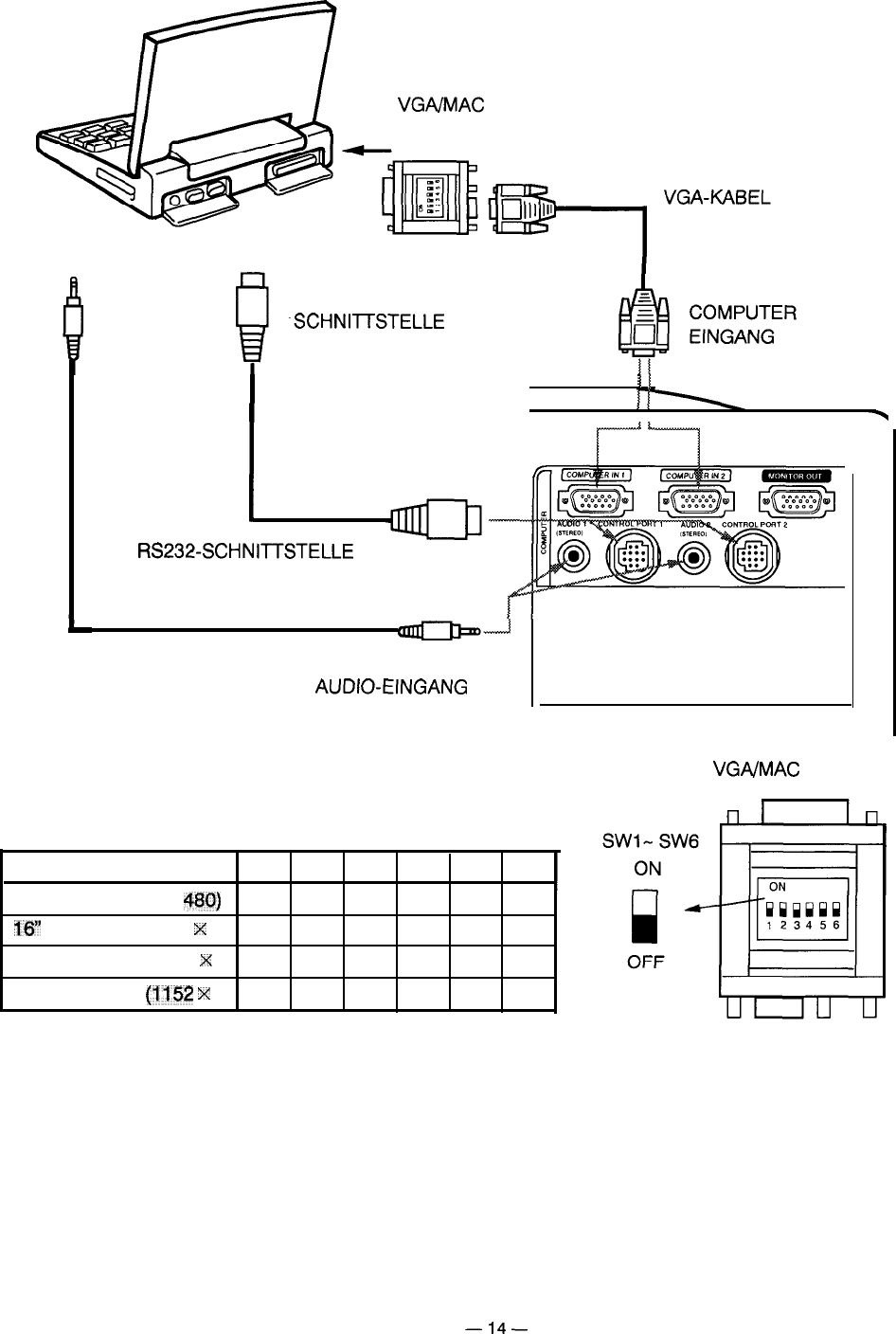 Stellen Sie die Schalter am VGA/MAC-ADAPTER vor