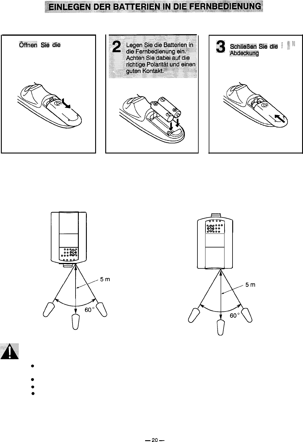 Setzen Sie die Fernbedienung keiner Nässe aus.