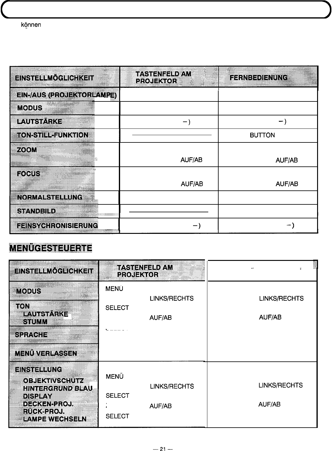 DAS EINSTELLEN DES PROJEKTORS