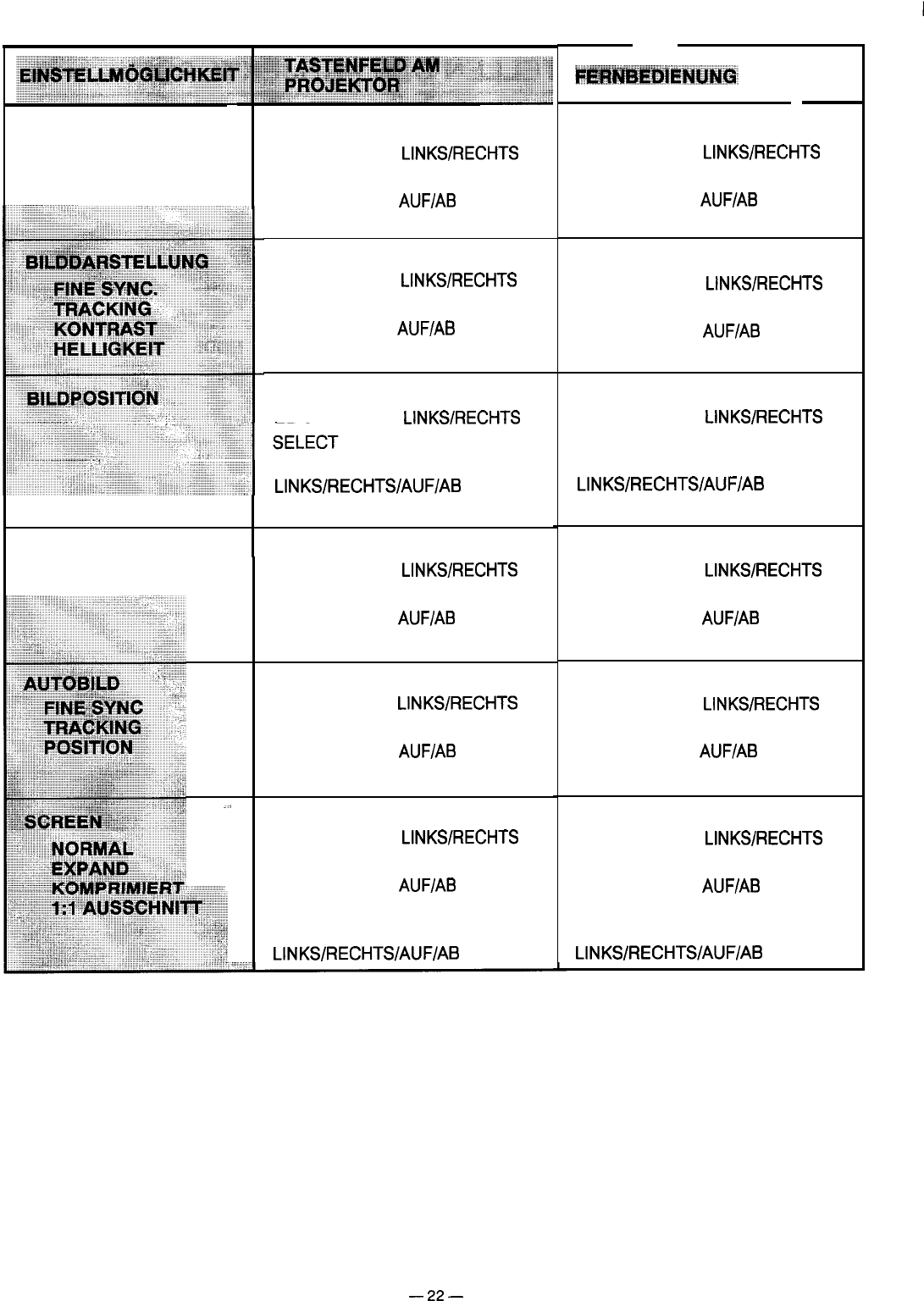 LINKS/RECHTS/AUF/AB