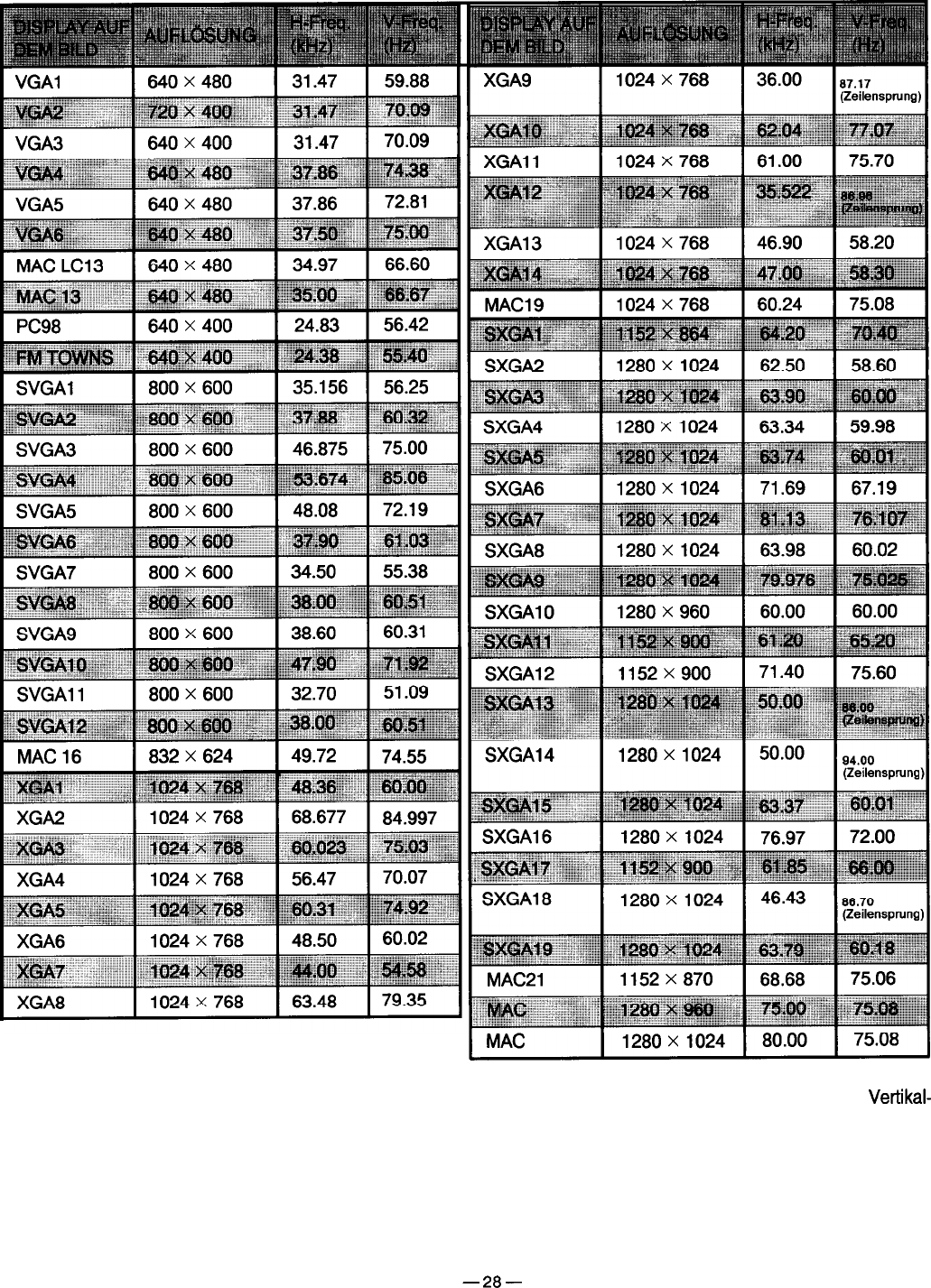 HINWEIS: Grundsätzlich kann dieser Projektor die Signale von allen Computern mit der oben erwähnten