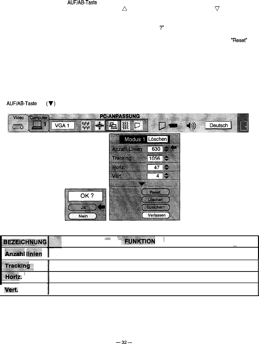 7. Die Parametereinstellungen, die vom Projektor entsprechend dem Eingangssignal vorgenommen wurden, sind
