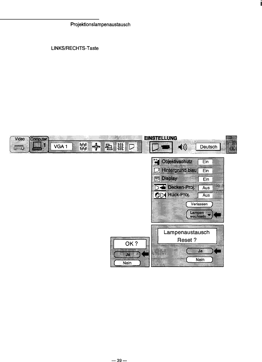 (Fernbedienung). In diesem Fall wird der Timer für den Lampenaustausch nicht zurückgestellt.