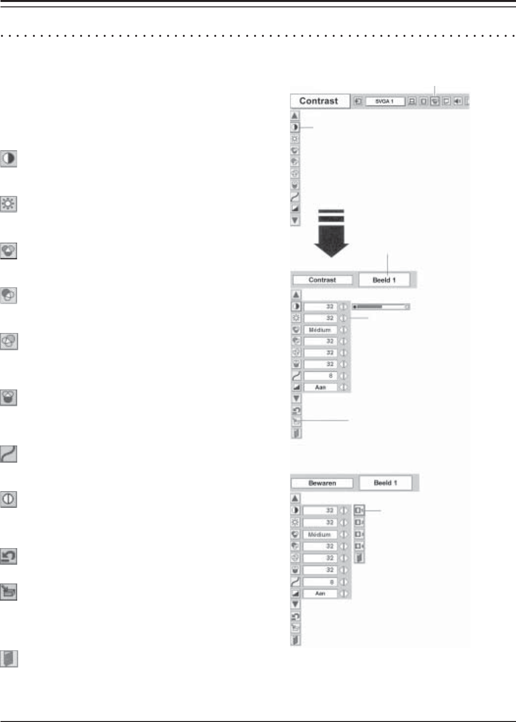 De l/r toetsen drukken om het BEELD INSTELLEN picto-