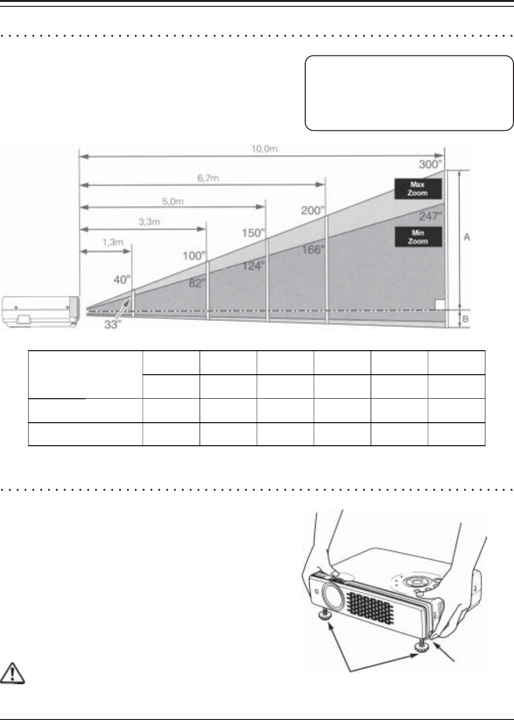 • Deze projector is ontworpen om te werken op een horizontaal vlak.