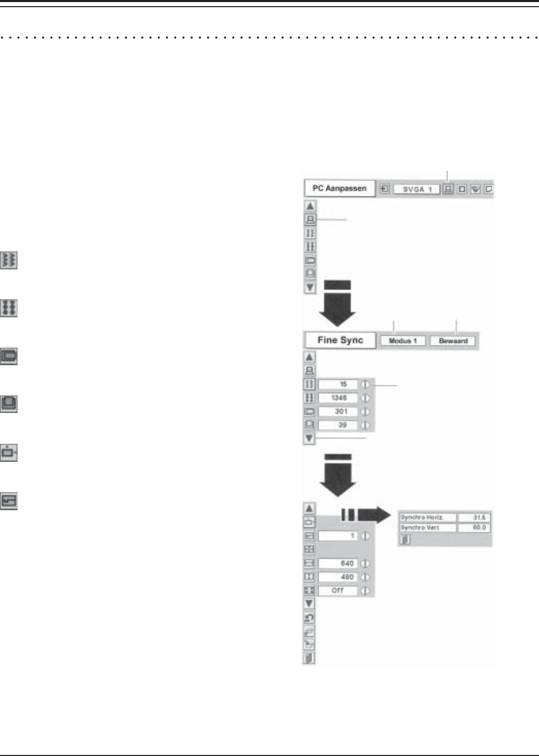 Deze projector heeft een MANUELE COMPUTER INSTELLING (MANUAL PC ADJUSTMENT) functie die toelaat de verschillende