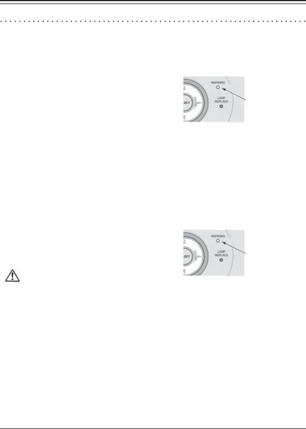 aangaat en de WARNING indicator blijft rood branden, de projec-