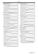 Contents [ADVANCED MENU] menu 95 125 [PROJECTOR SETUP] menu [DIGITAL CINEMA REALITY] [PROJECTOR ID] 95 125 [BLANKING] [PROJECTION METHOD] 95 125 [INPUT RESOLUTION] [OPERATION SETTING] 96 125 [CLAMP POSITION] [LIGHT OUTPUT] 96 129 [EDGE BLENDING] [BRIGHTNESS CONTROL] 97 130 [FRAME RESPONSE] [STANDBY MODE] 98 134 [FRAME CREATION] [NO SIGNAL SHUT-OFF] 99 134 [FRAME LOCK] [NO SIGNAL LIGHTS-OUT] 99 134 [RASTER POSITION] [INITIAL STARTUP] 100 135 [START