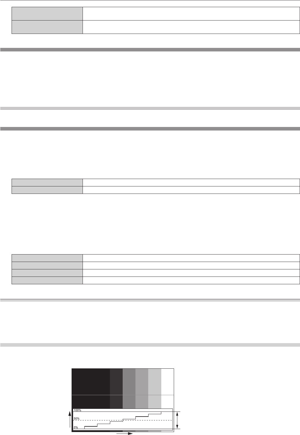 Project the luminance adjustment signal of a commercial test disk (0 % (0 IRE or 7.5 IRE) – 100 % (100 IRE)) and