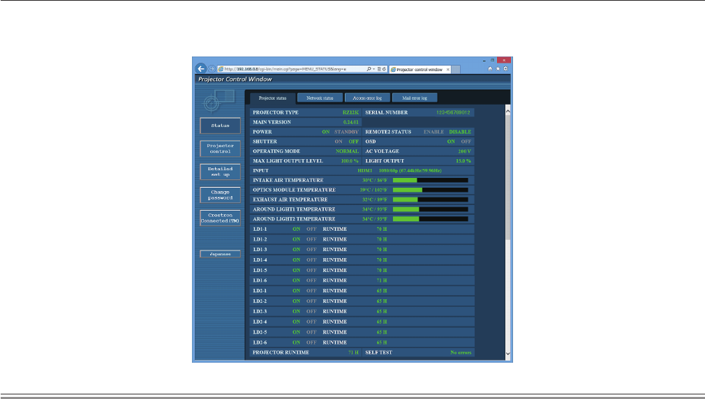 f Do not perform setting or control simultaneously by starting up multiple web browsers. Do not set or control the projector from multiple