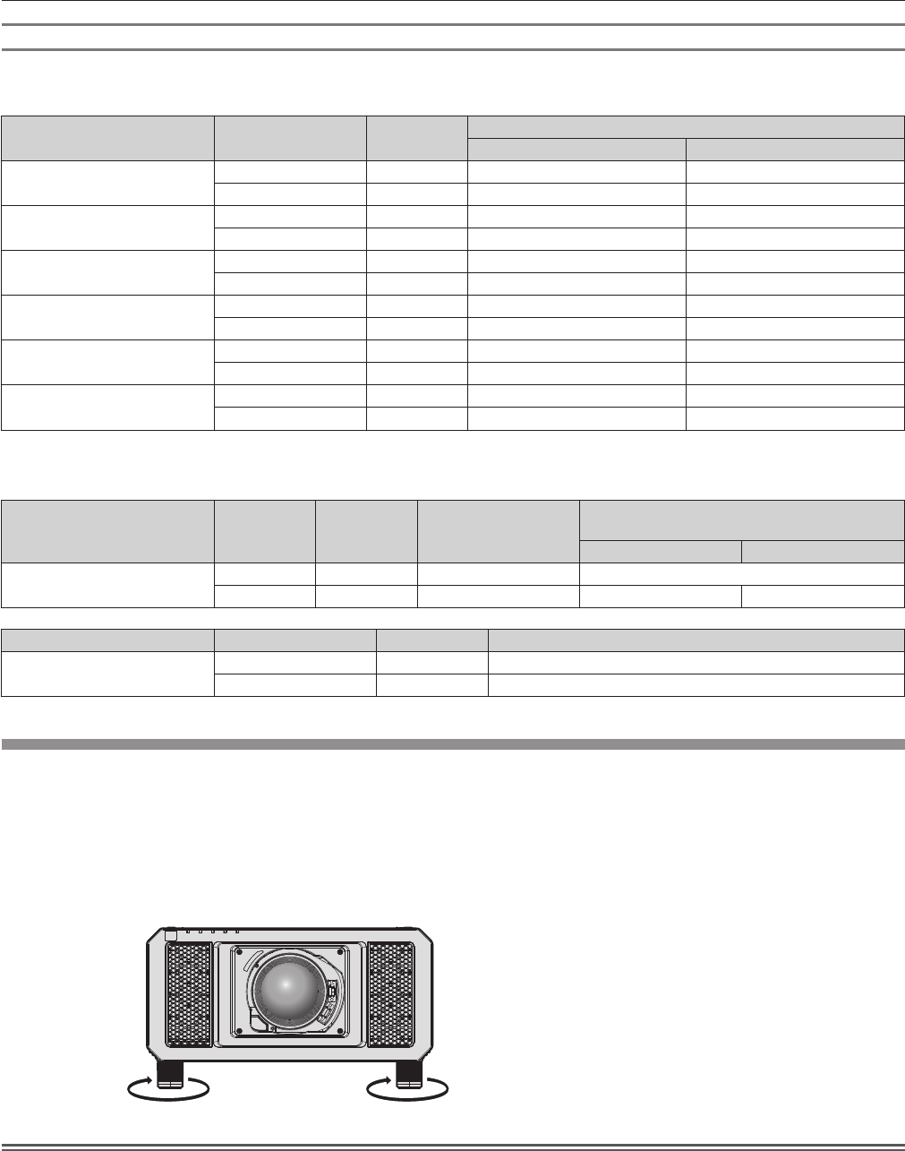 adjustable feet. The adjustable feet can also be used to adjust the projector to be level when it is tilted in the