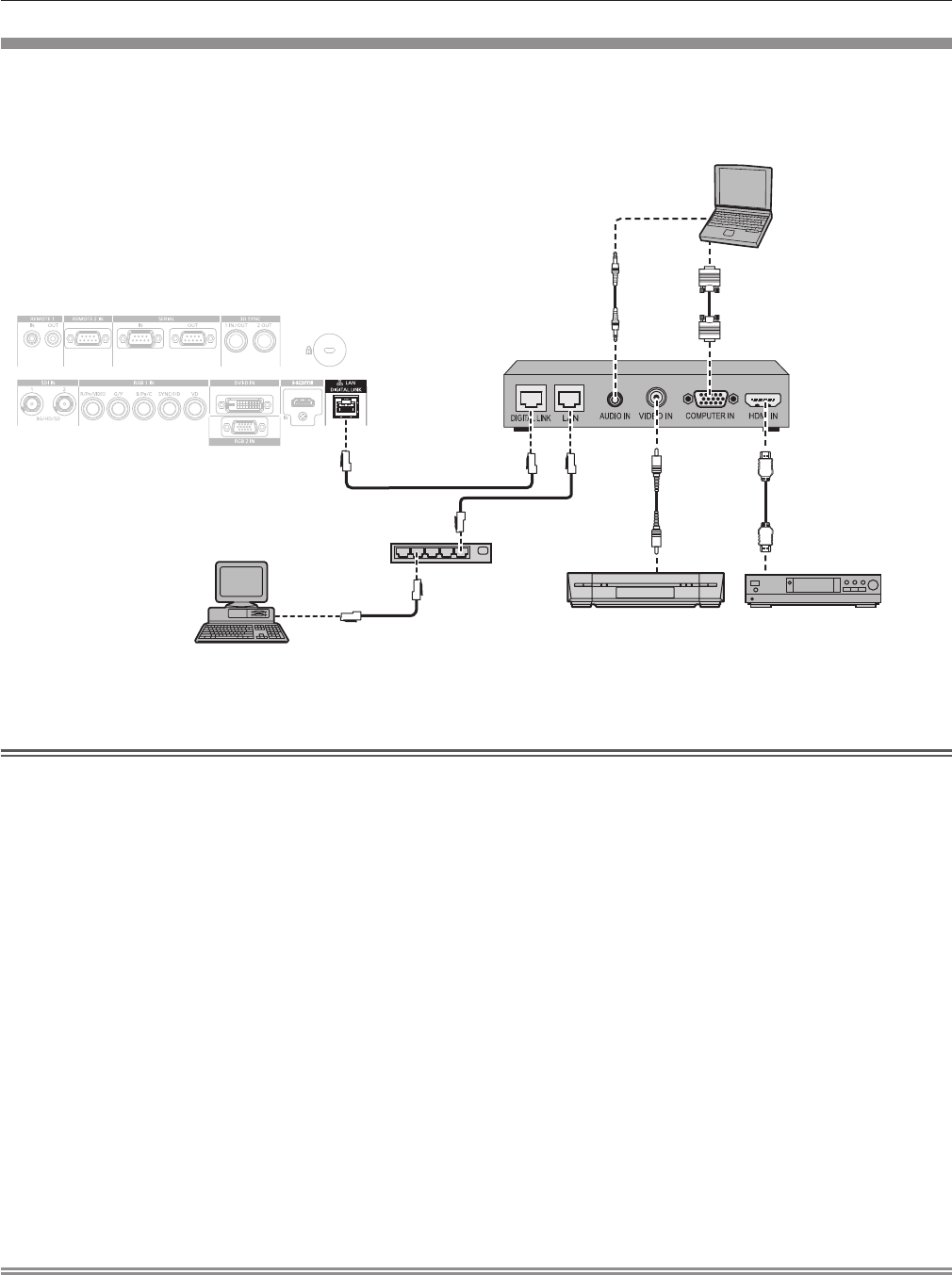 f When connecting to the projector using a twisted-pair-cable transmitter (receiver) of other manufacturers, do not place another twisted-pair-