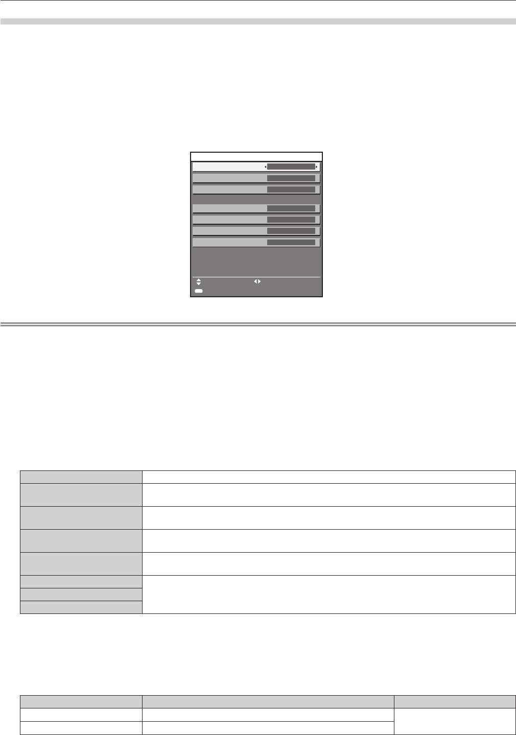 Set the items for the operating method depending on the projector’s application and duration of usage.
