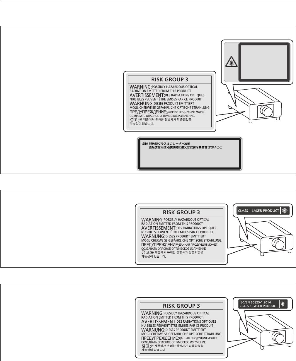 This projector is the Class 1 laser product that complies with IEC/EN 60825-1:2014.