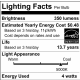 Lighting Facts rerun Brightness 350 lumen Estimated Yearly Energy Cost $0.48 Based on 3 hrs/day, Cost depends on rates and use Life ENERGY STAR Based on 3 hrs/day 13.