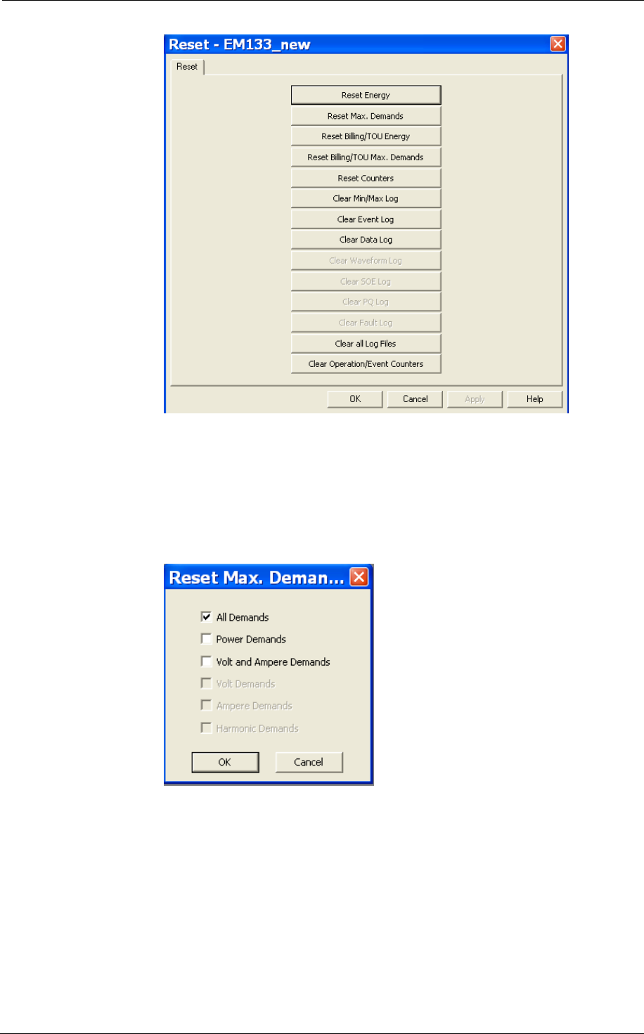 Figure 6-2: Reset Maximum Demands Dialog Box