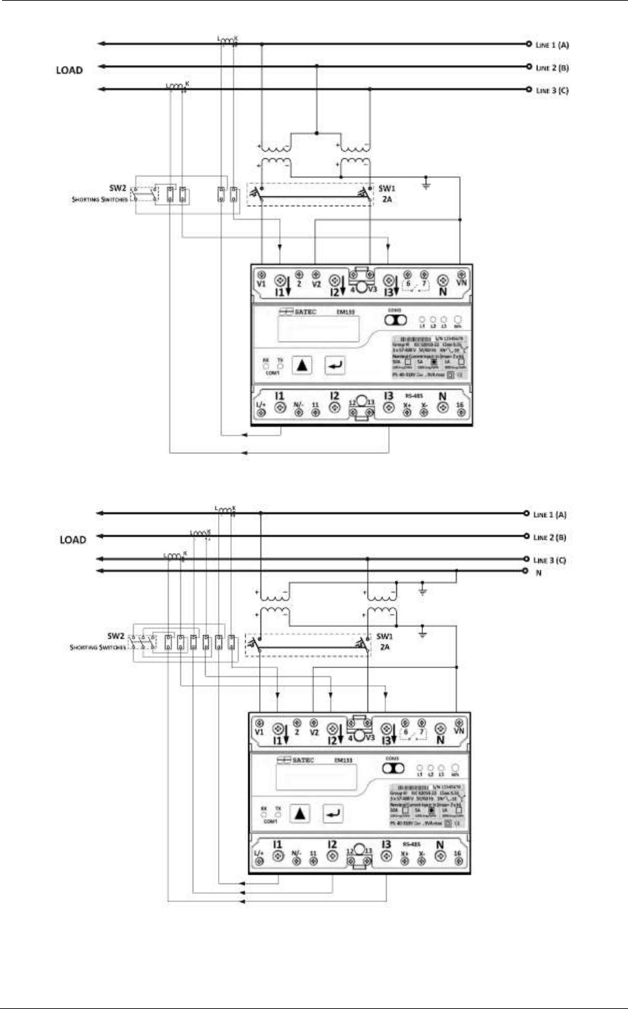 Figure 2-17 4-Wire Wye 2½-Element Connection Using 2 PTs, 3 CTs (Wiring Mode = 3LL3 or 3Ln3)