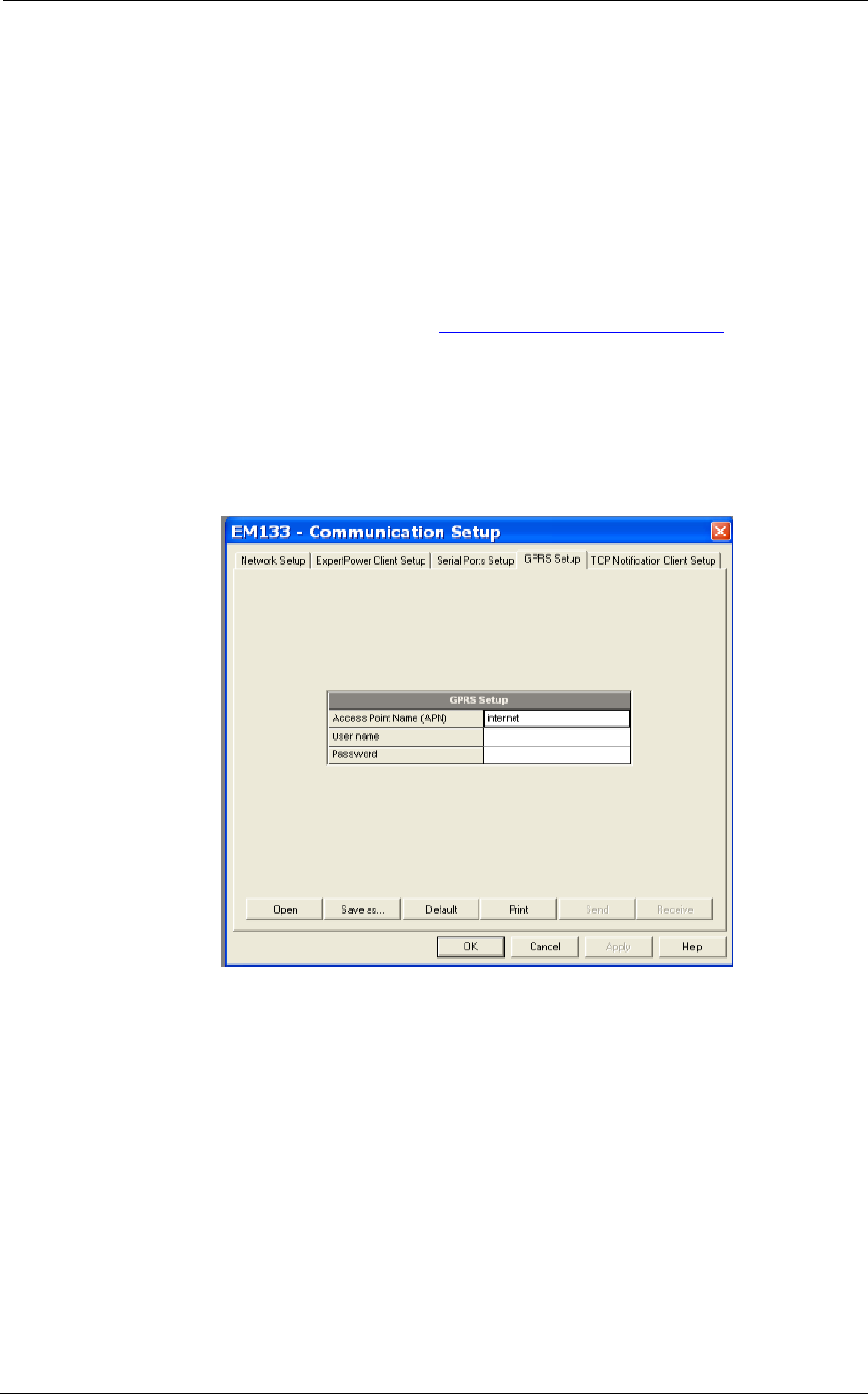 Figure 5-3: Communication Setup Dialog Box – GPRS Setup Tab