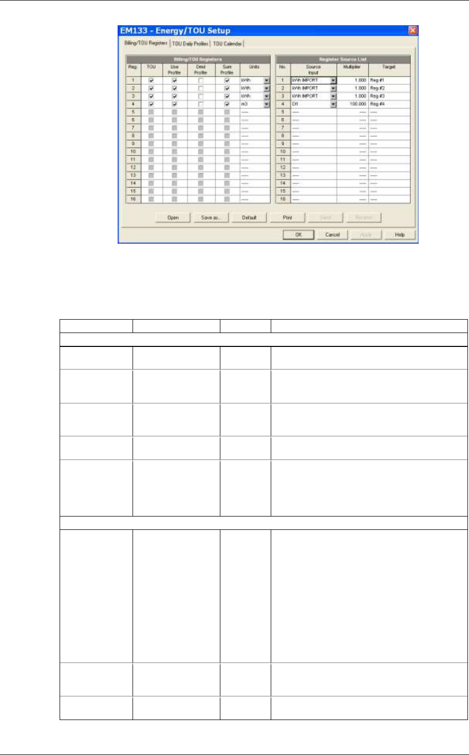 Figure 5-15: Energy/TOU Setup Dialog Box – Billing/TOU Registers tab