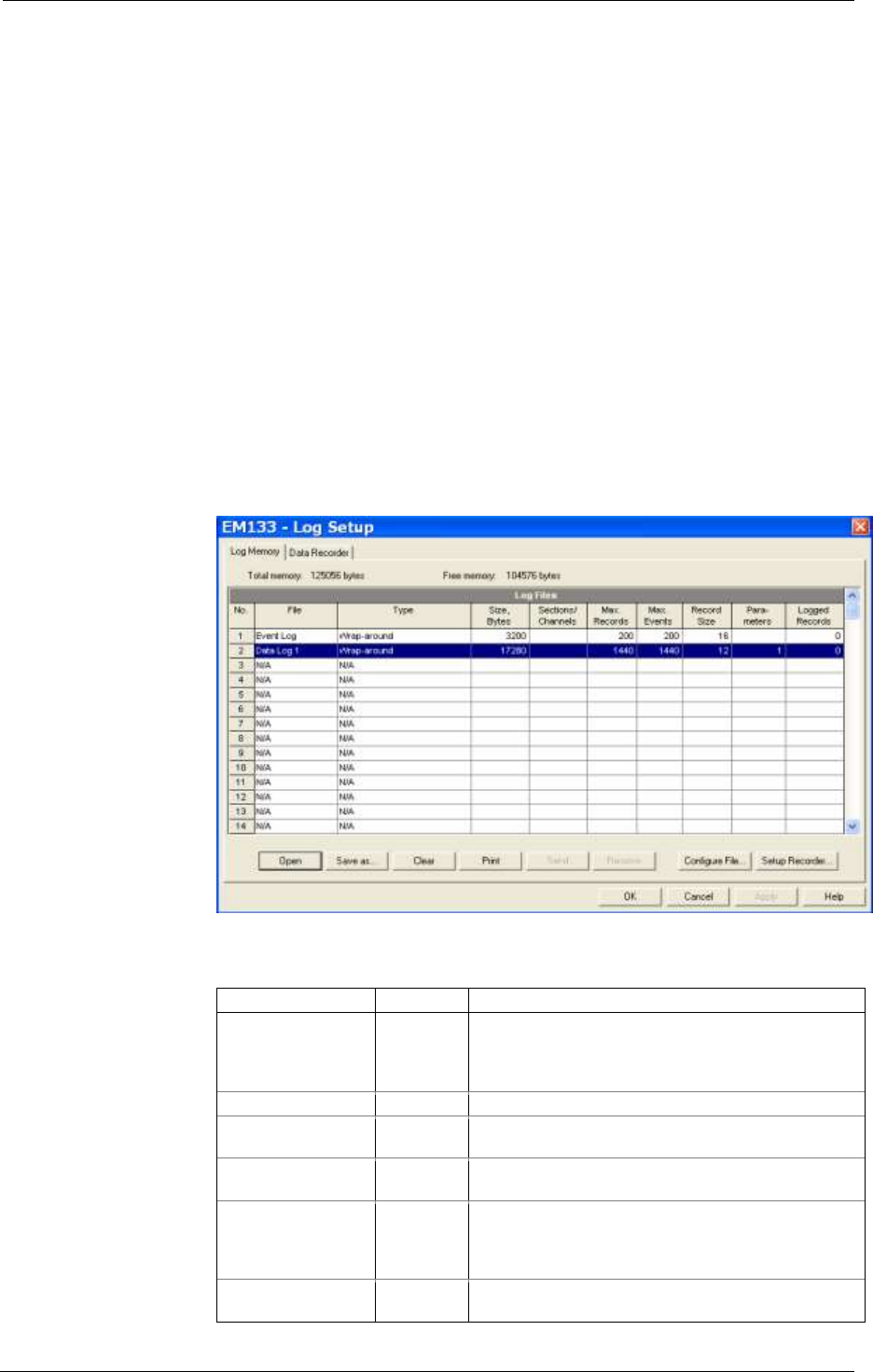 Figure 5-18: Log Setup Dialog Box – Log Memory Tab