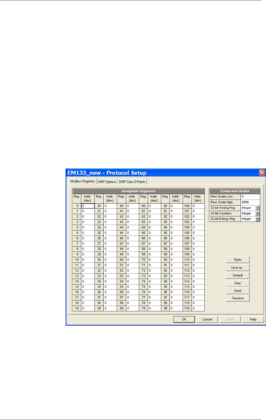 Figure 5-20 : Protocol Setup Dialog Box – MODBUS Registers Tab