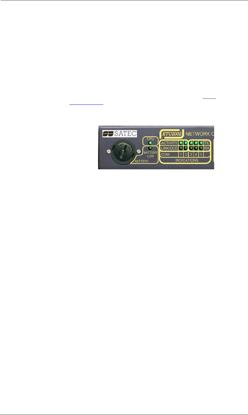 The yellow BATTERY LOW LED lights up when the backup battery is near