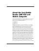 CHAPTER 1 About the Savi Mobile Reader SMR-650 and Mobile Computer This guide is primarily designed for use of the SMR-650-212 Reader as packaged in kit models 741G-Kit-C-101x and 751G-Kit-C-101x. It also describes reader functionality, components, and specifications. Note: In this guide, when the model of the mobile reader or kit is not specifically mentioned, the information applies to all mobile reader models and kits.