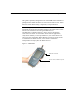 CHAPTER 3 Recharging Batteries 3. Connect the female end of the power cable to the mobile reader power supply. Connect female end of the power cable to the power supply Connect this end of the power supply to the mobile reader 4. Connect the other end of the power supply to the mobile reader. Determining Available Battery Power You can determine the percentage of battery power available based on the activity of the green LED on the SMR-650 Reader.