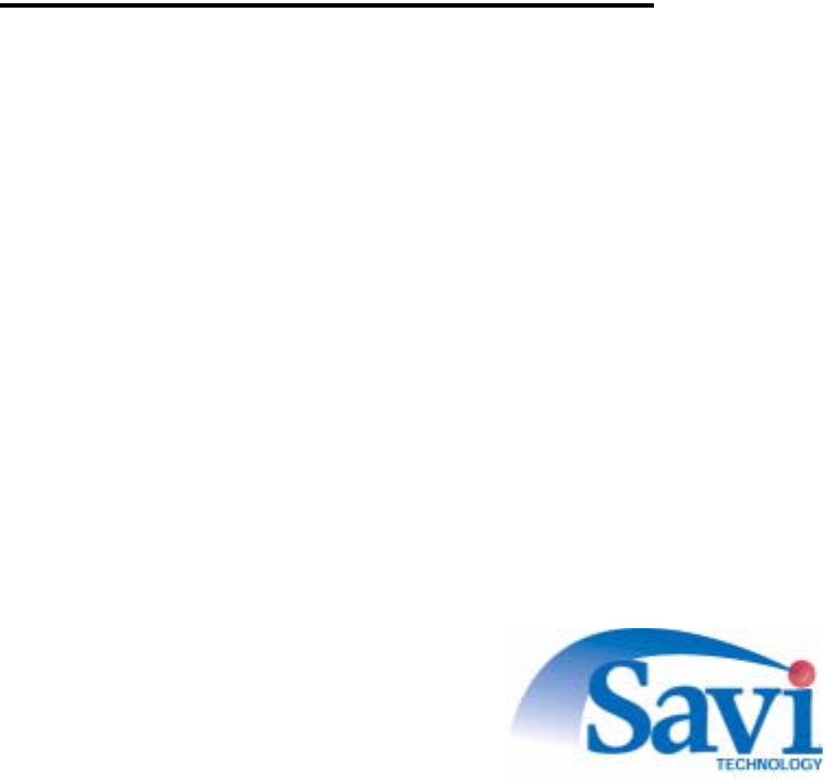 First edition February 2004 Part number 805-04400-001 Rev A Documentation for SaviTag ST-654, version 1.0 Copyright © 2004 Savi Technology, Inc. All rights reserved. Information in this manual is subject to change without notice and does not represent a commitment from the vendor. The software and/or databases described in this document are furnished under a license agreement or nondisclosure agreement. The software and/or databases may be used or copied only in accordance with the terms of the agreement.