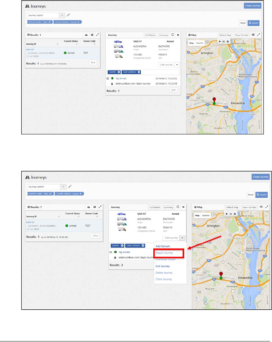 5. Once the Mobile Security Parent is armed, select “Depart Journey” from the