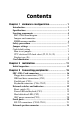 Contents Chapter 1 Hardware configuration .......................... 1 Introduction ............................................................................ 2 Specifications .......................................................................... 3 Locating components ............................................................. 4 SBC-350A board diagram ..................................................... 5 Jumpers and connectors ........................................................