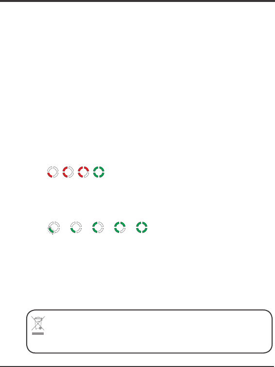 • По време на зареждането светодиодите светят в червено. Всички светодиоди ще светнат