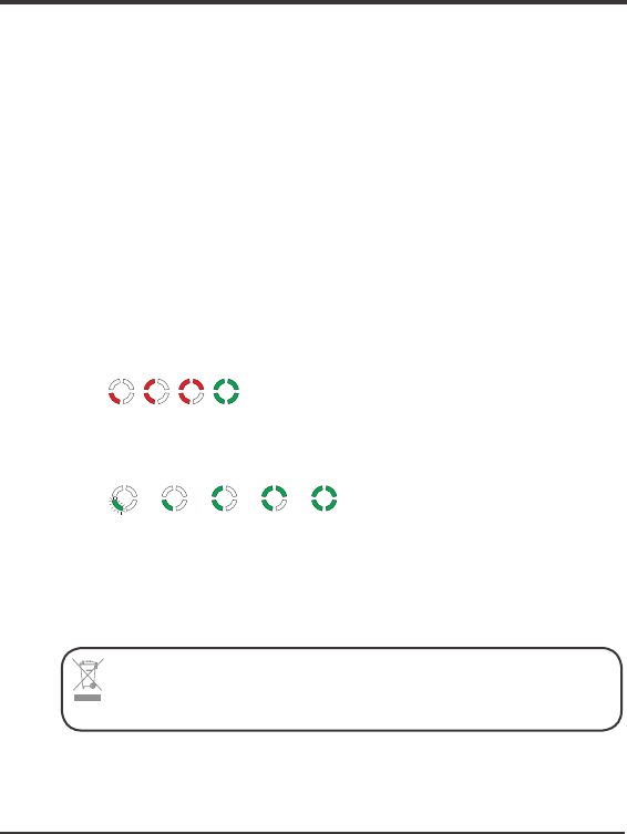 • Under laddning lyser LED-lamporna rött. Alla LED-lampor lyser grönt vid full laddning