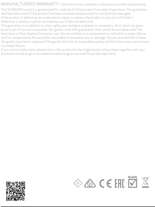 purchase receipt or go to our website www.scangrip.com and fill out the claim form.
