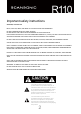 R110 Manuel de l'utilisateur Introduction Nous vous remercions d'avoir acheté notre R110. Nous espérons que ce produit vous apportera toute satisfaction pendant de nombreuses années. ATTENTION, veuillez d'abord lire ceci LIRE, SUIVRE, CONSERVER ET RESPECTER TOUTES LES INSTRUCTIONS ET TOUS LES AVERTISSEMENTS. NE PAS PLACER L'APPAREIL PRÈS D'UNE SOURCE DE CHALEUR. NE PAS OBSTRUER LES OUVERTURES DE VENTILATION DE CET APPAREIL. Veuillez lire attentivement ce manuel avant de déballer et d'installer le produit.
