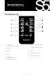 Übernahmefunktion der Fernbedienung Einleitung: Benutzen Sie eine Fernbedienung, die RC5, NEC und dem Codierformat entspricht, um den Code von den Lautsprechern zu übernehmen. 3 Funktionen können übernommen werden: Vol+, Vol-, Eingangsquelle. Hinweis: Benutzen Sie die Tasten im Bedienfeld, nicht auf der Fernbedienung, um die Übernahme einzurichten. ÜBERNAHMEFUNKTION EINRICHTEN 1. Verwenden Sie eine zweite Fernbedienung, wenn Sie den Scansonic S5 BTL aktiven Lautsprecher steuern möchten. 2.