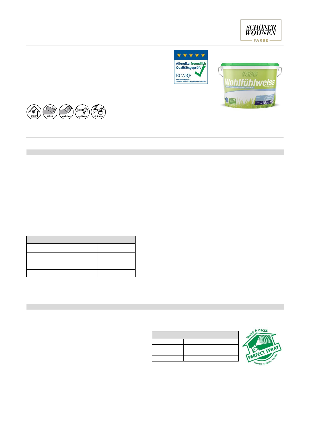 (Nassabriebbeständigkeit Klasse 3 nach EN 13300), hoch wasserdampfdiffusionsfähig und leicht zu verarbeiten. Geeignet