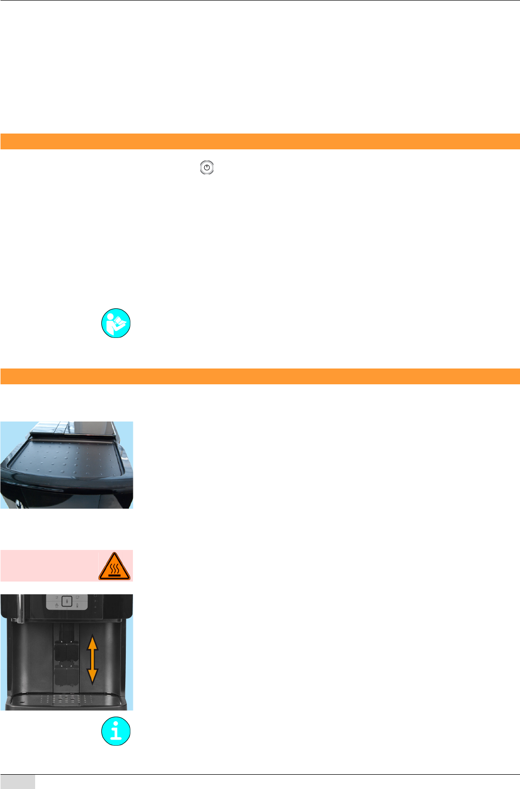 A storage area for cups is located on top of the coffee machine. When the machine is switched