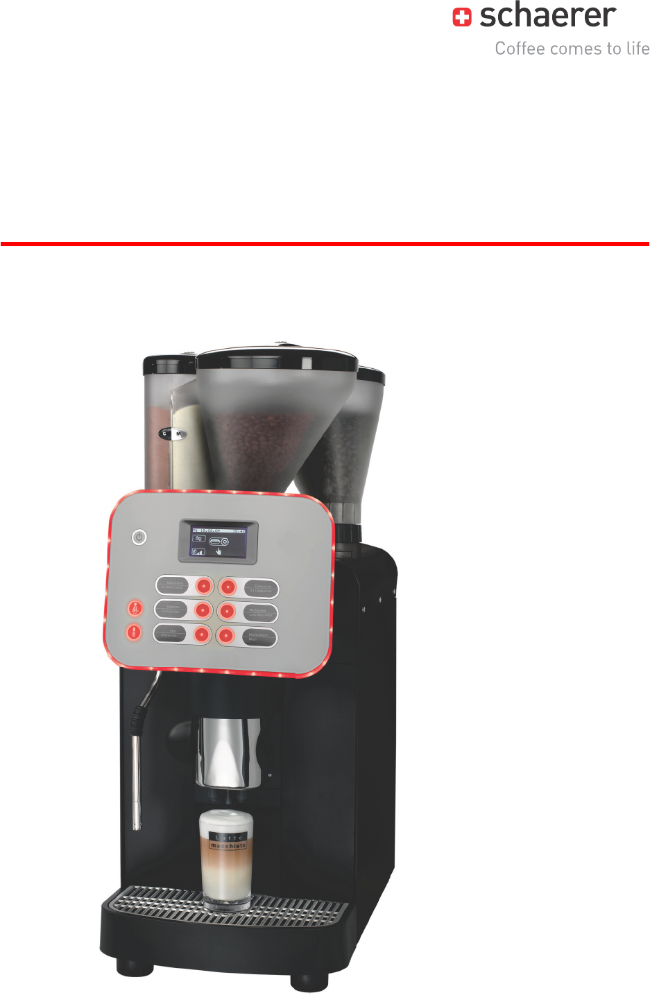 www.schaerer.com Einleitung Einleitung Willkommen Mit dieser Kaffeemaschine haben wir für Sie die nächste Generation von Kaffeevollautomaten entwickelt. Kernkompetenzen sowie jahrzehntelange Erfahrung aus unserem Unternehmen sind in die Konstruktion mit eingeflossen. Die vorliegende Betriebsanleitung informiert Sie über das Produkt, den Gebrauch und die Reinigung Ihrer Kaffeemaschine. Wird die Kaffeemaschine nicht den Anweisungen entsprechend benutzt, wird jede Haftung bei Schäden ausgeschlossen.